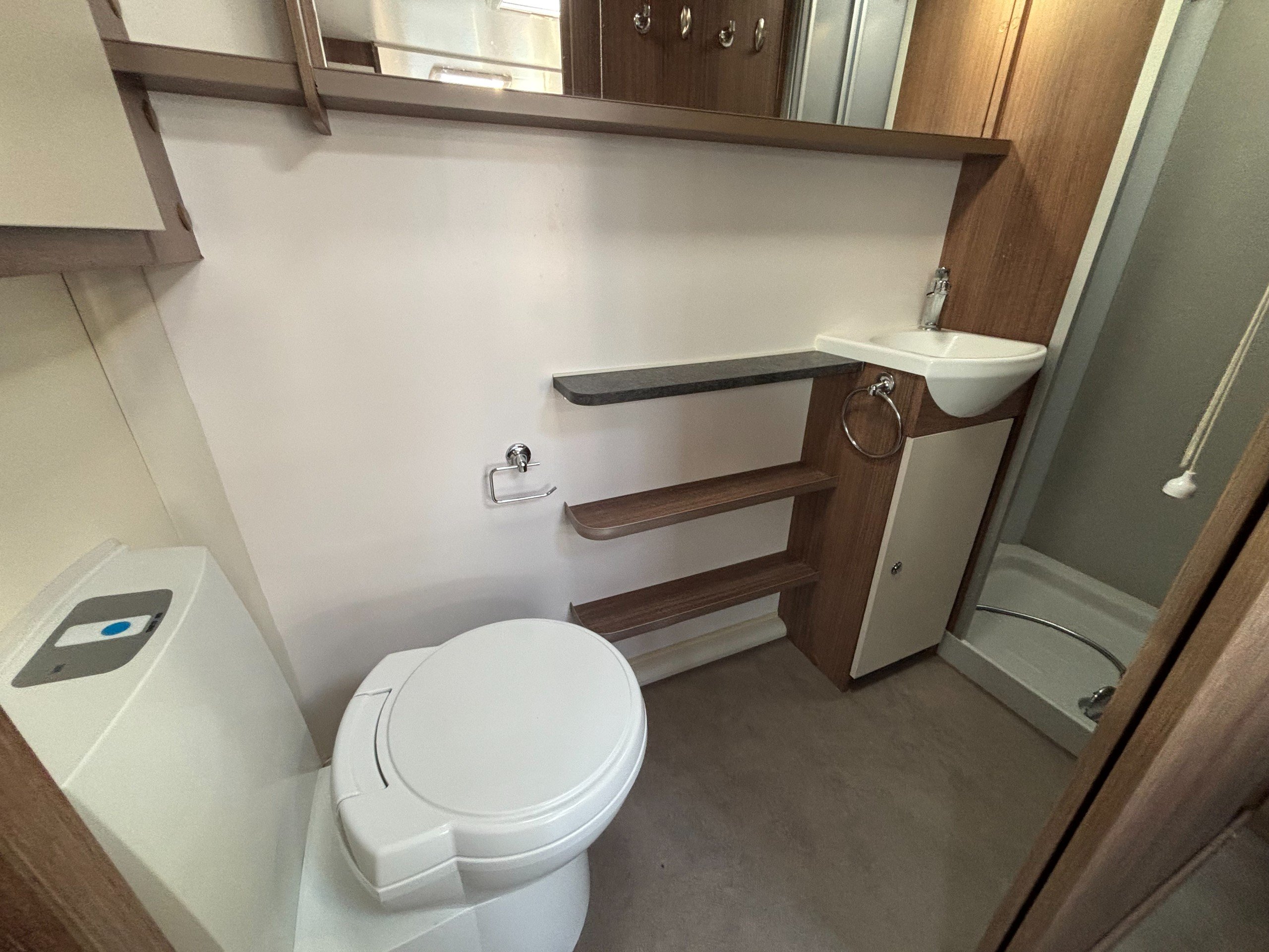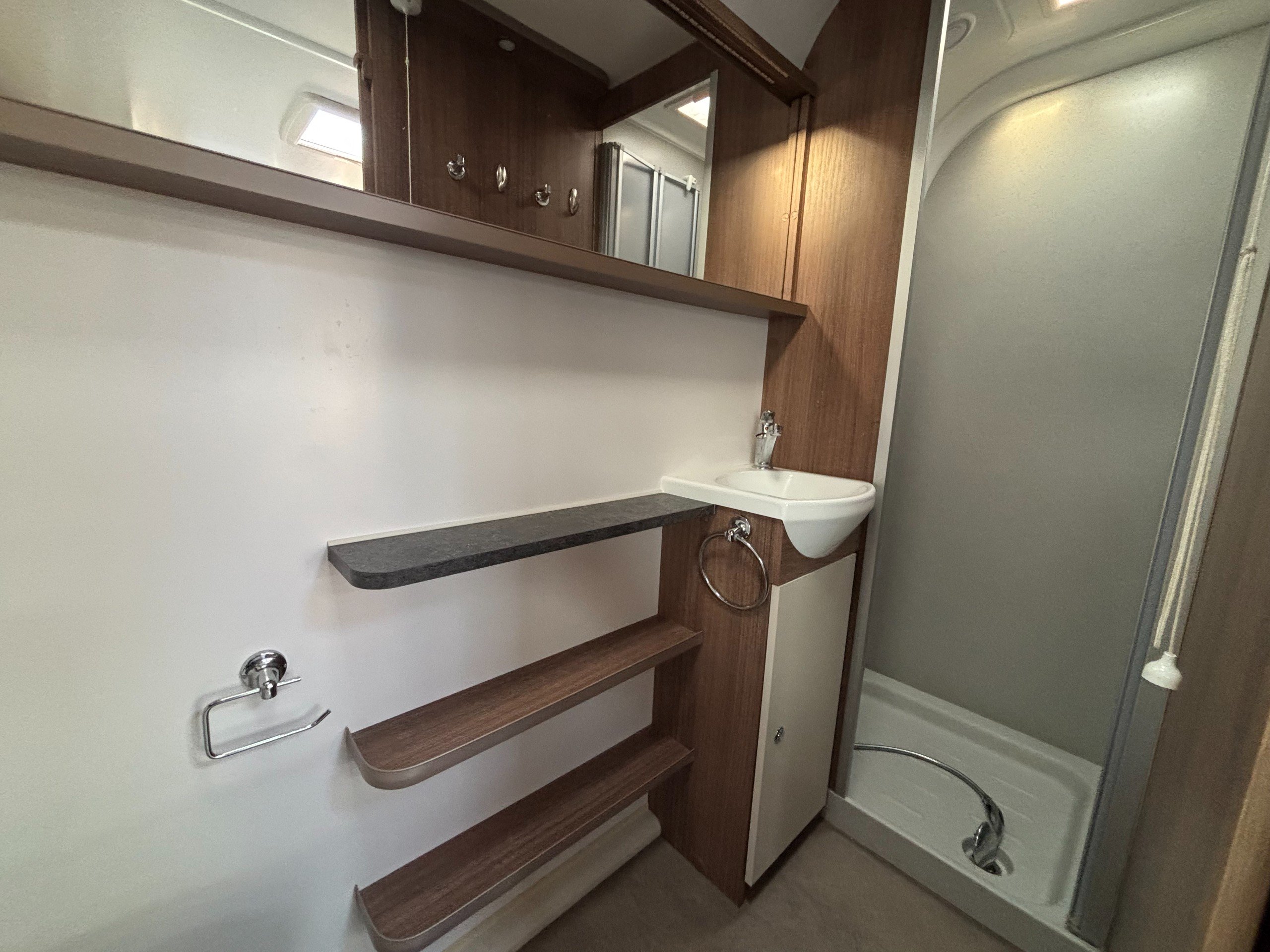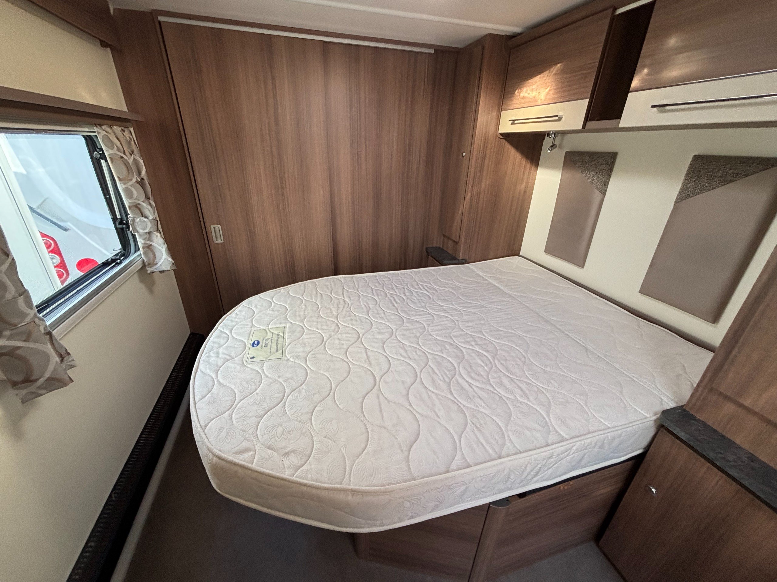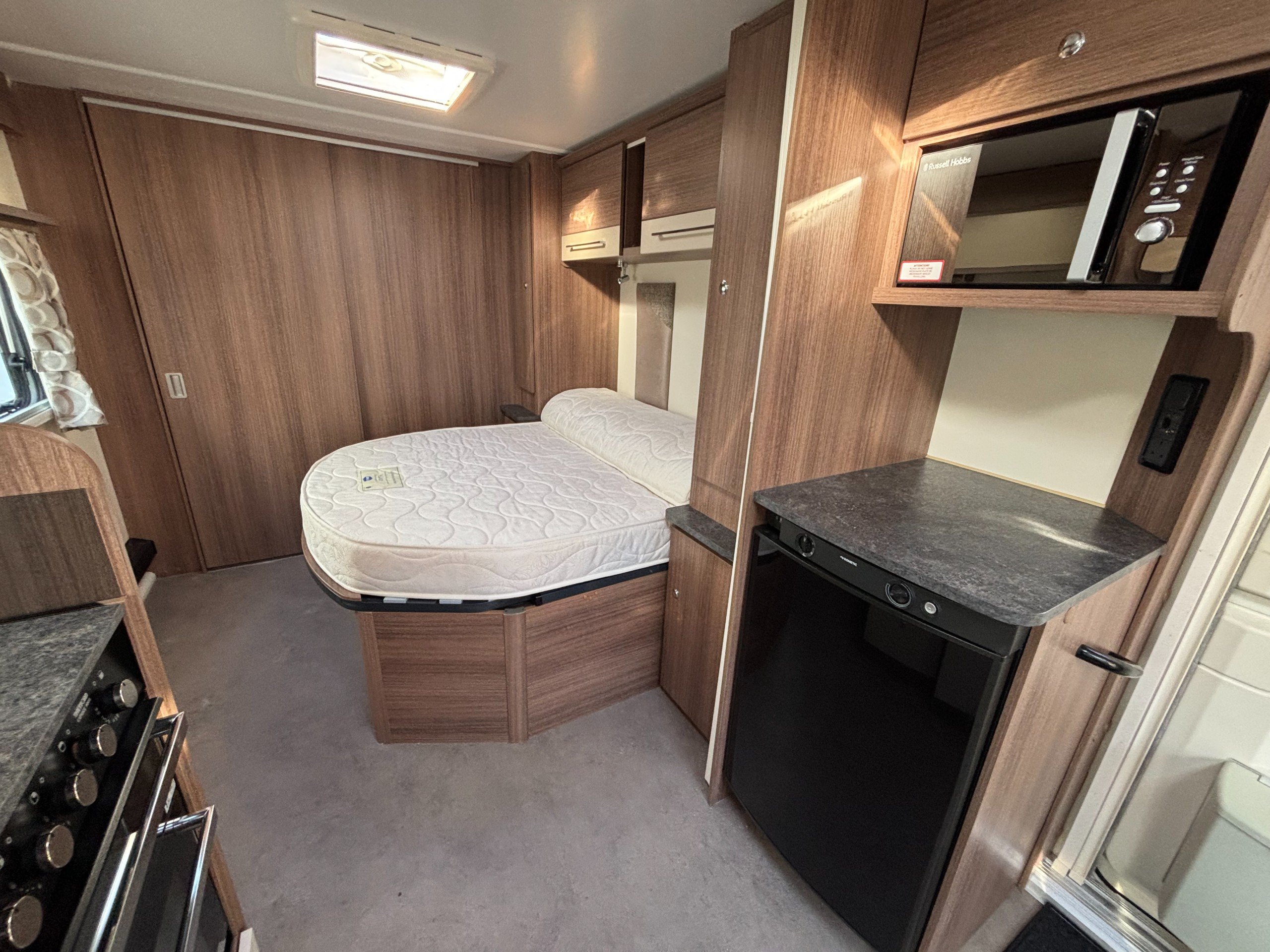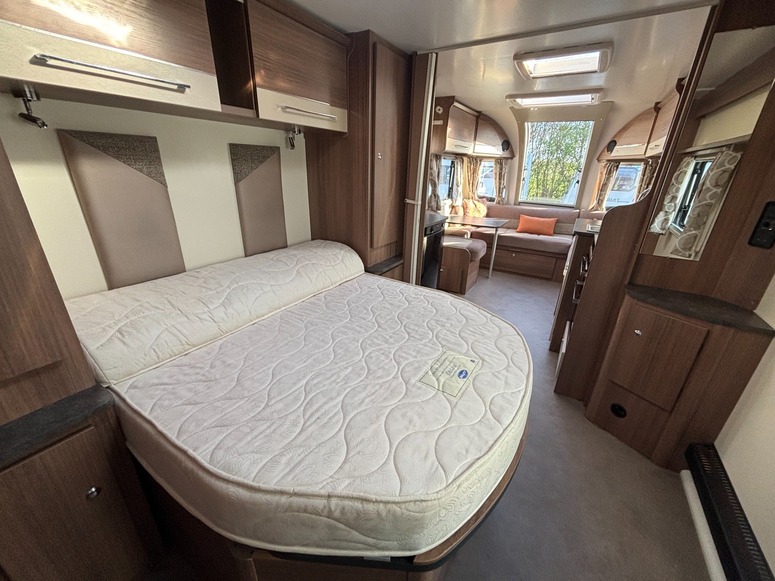 Single axle, 8ft wide with a transverse island bed and end washroom