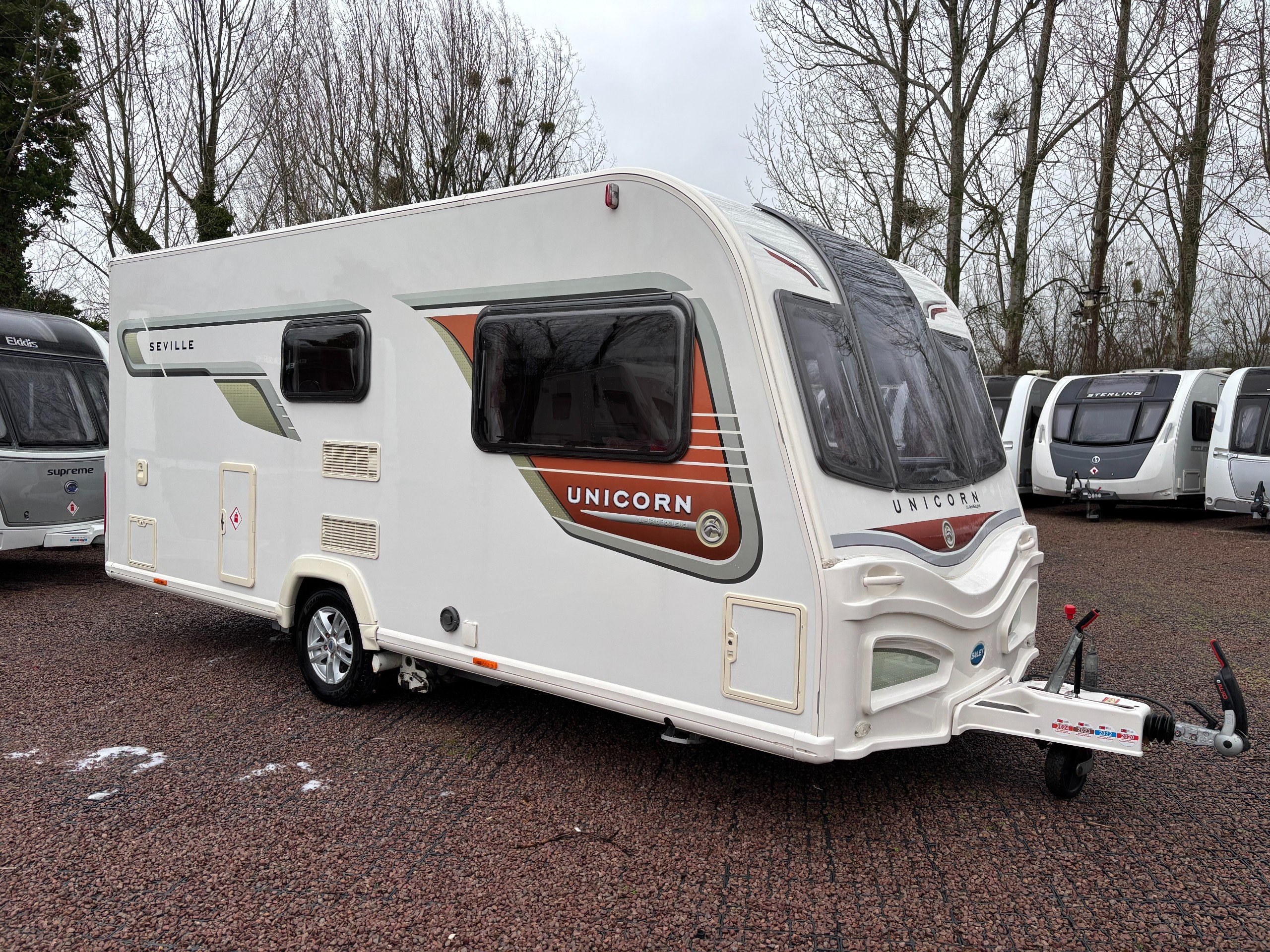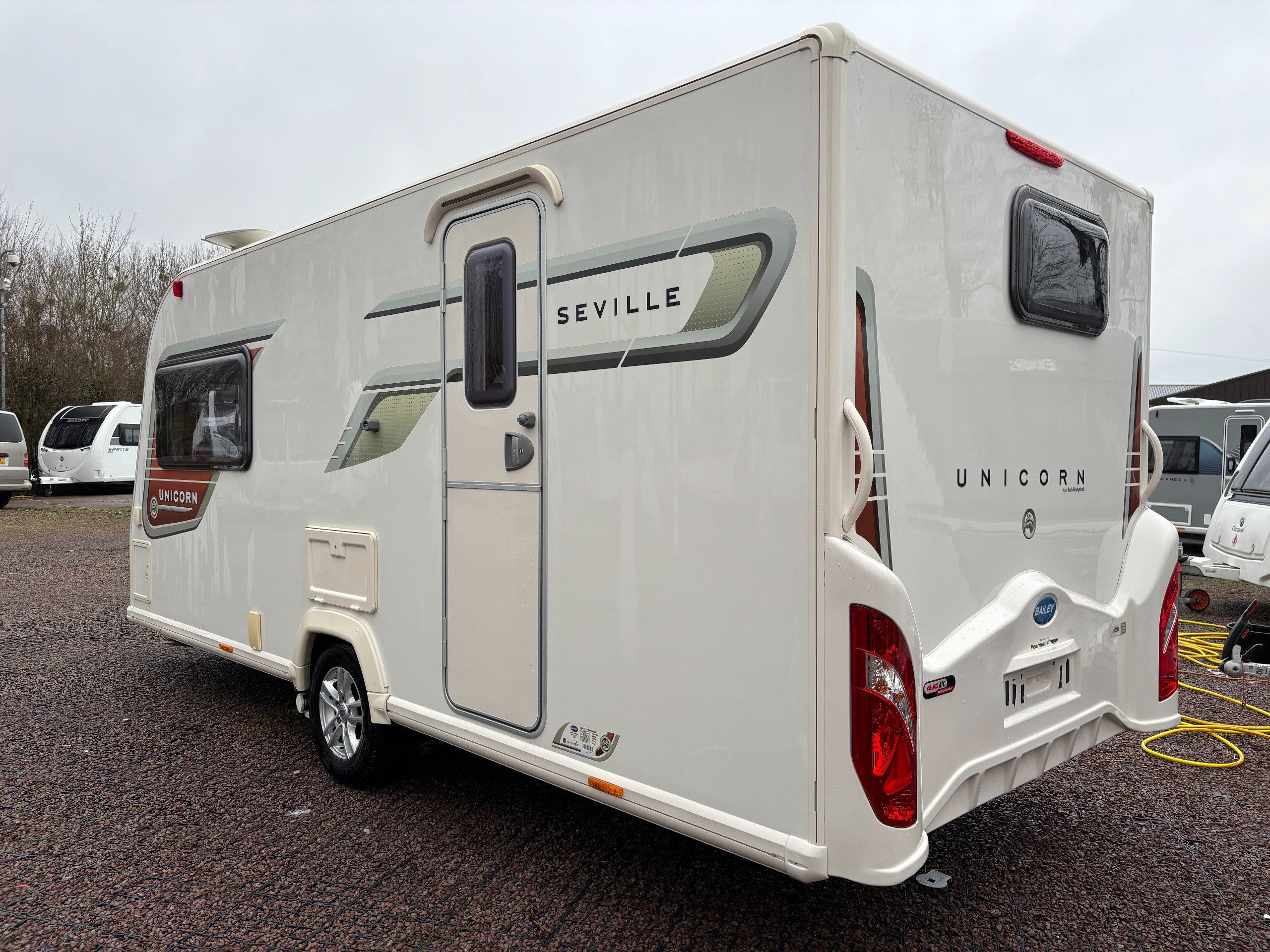 From the popular Bailey Unicorn portfolio this Seville S2 comprises of a large front dinette that can be used as either two singles or a large double, mid kitchen with modern appliances and an end washroom with cassette toilet and separate shower.