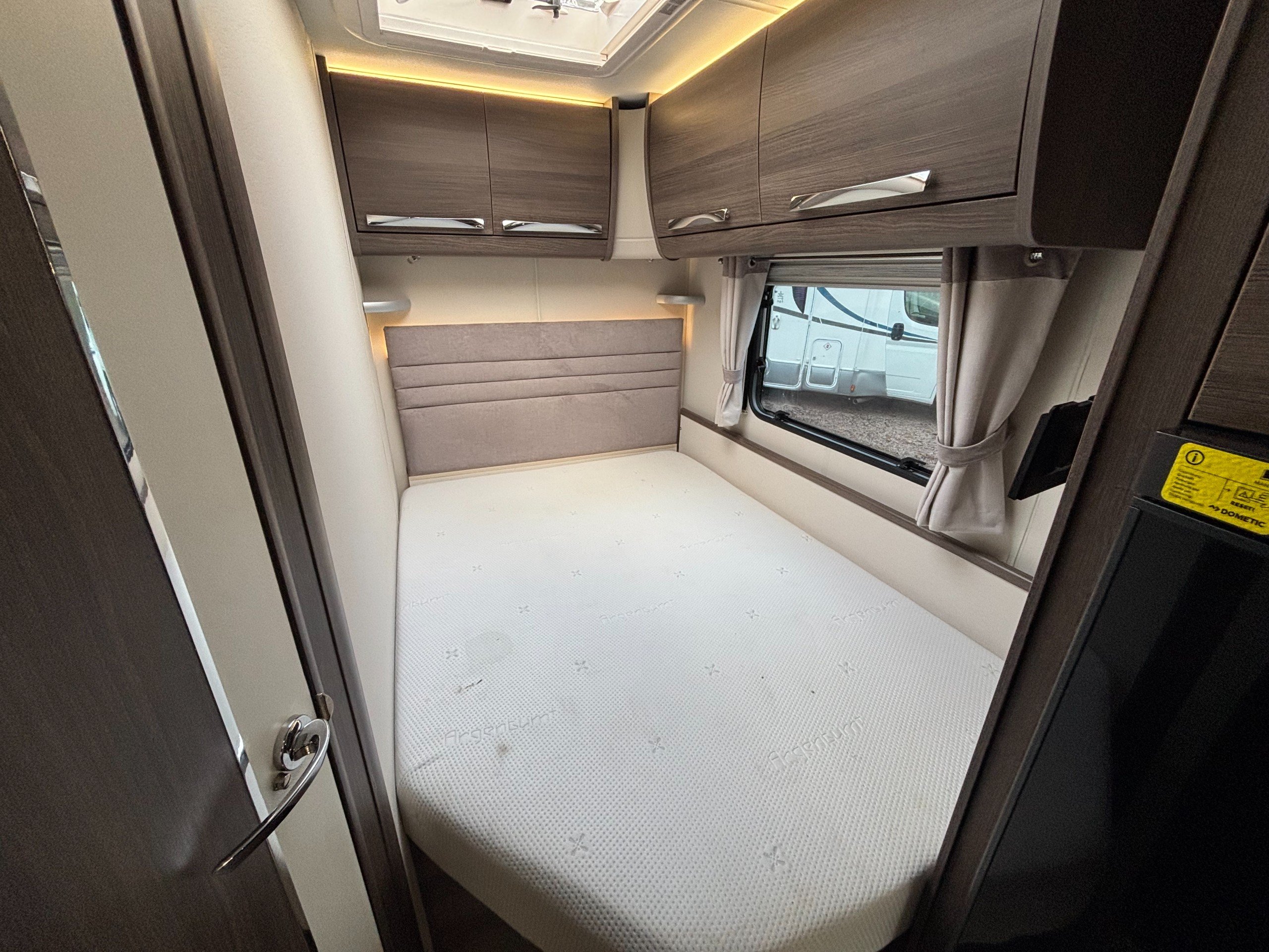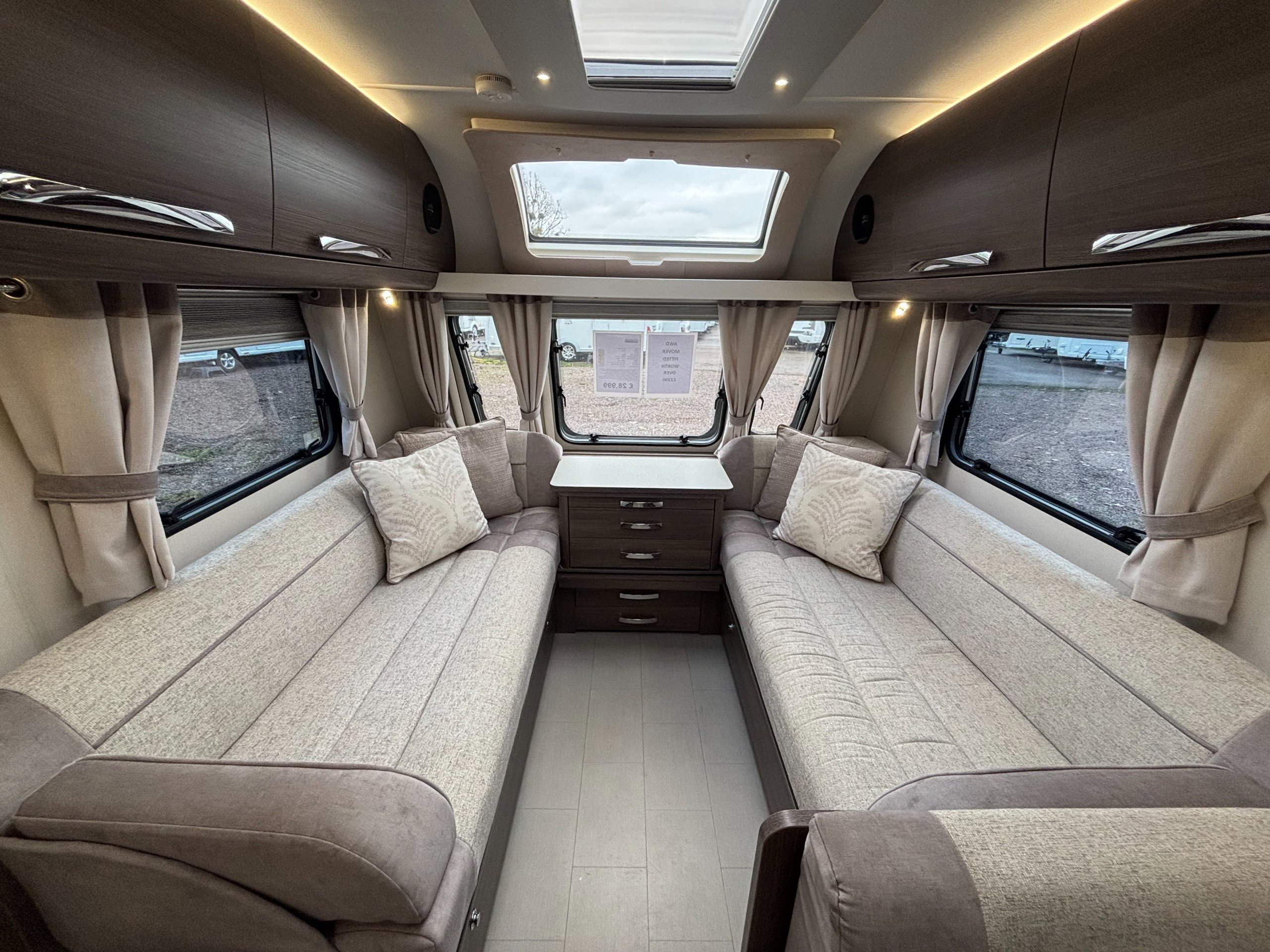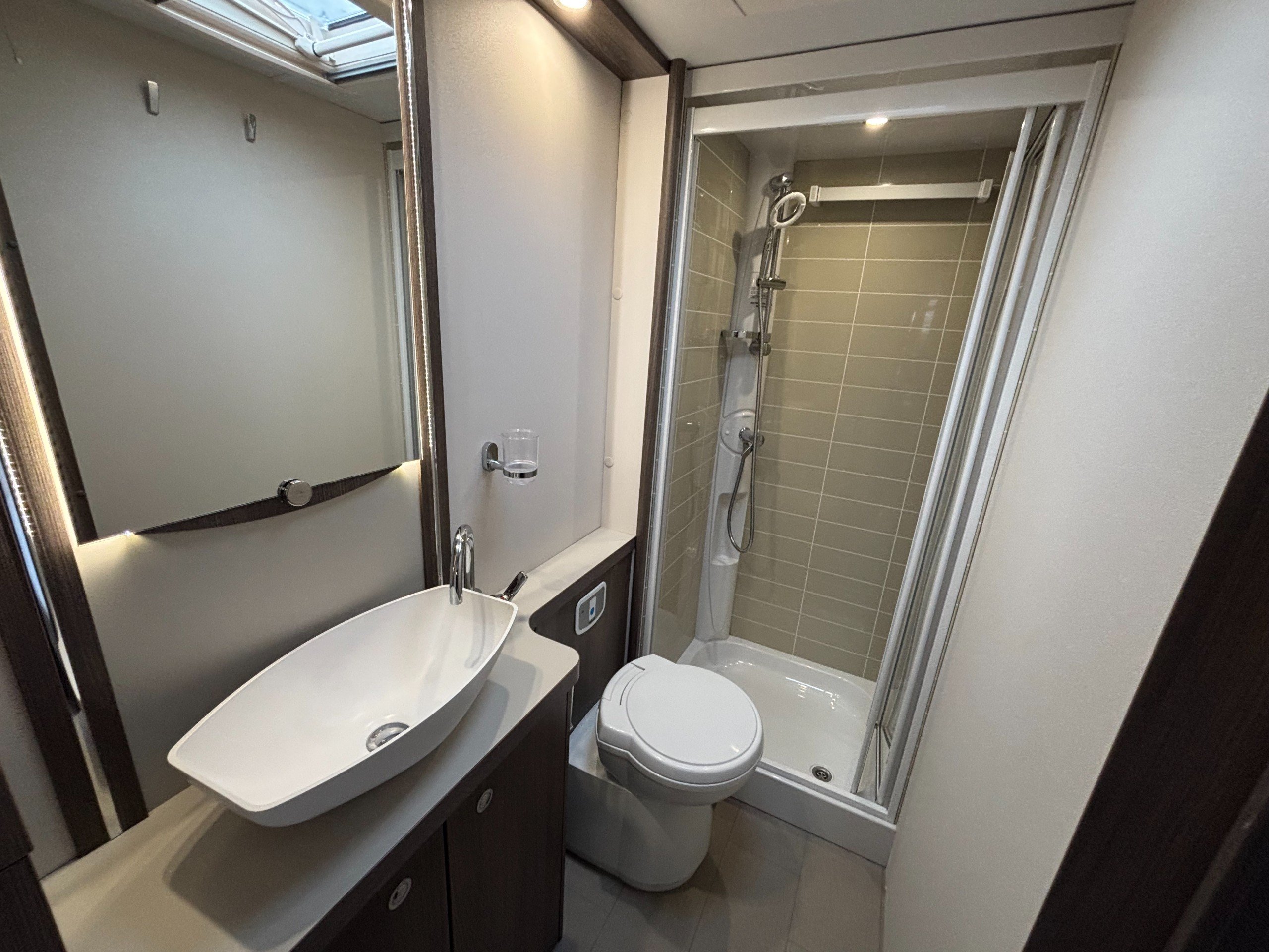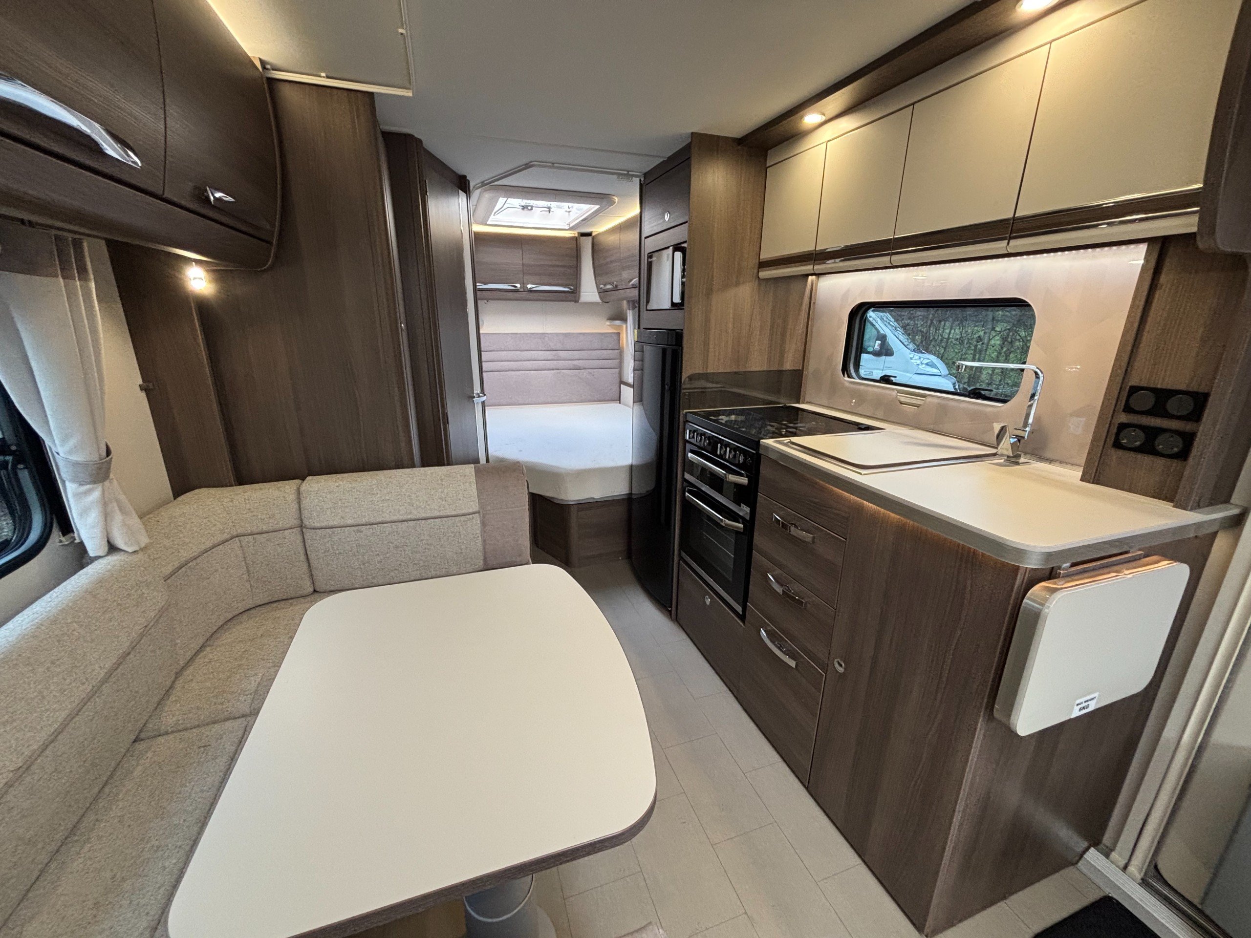 A high specification 6 berth including a large side dinette, fixed bed and corner washroom with separate shower.