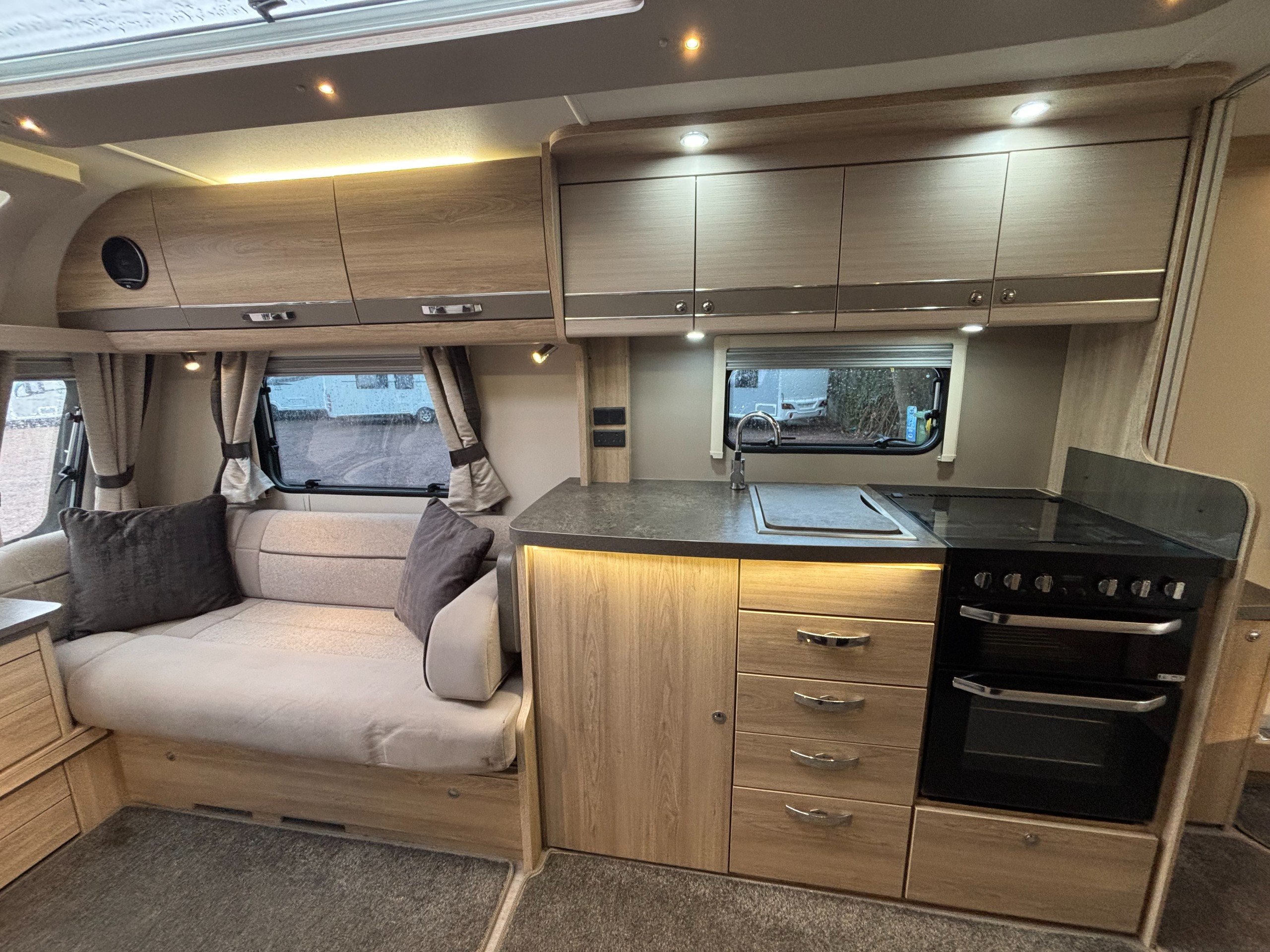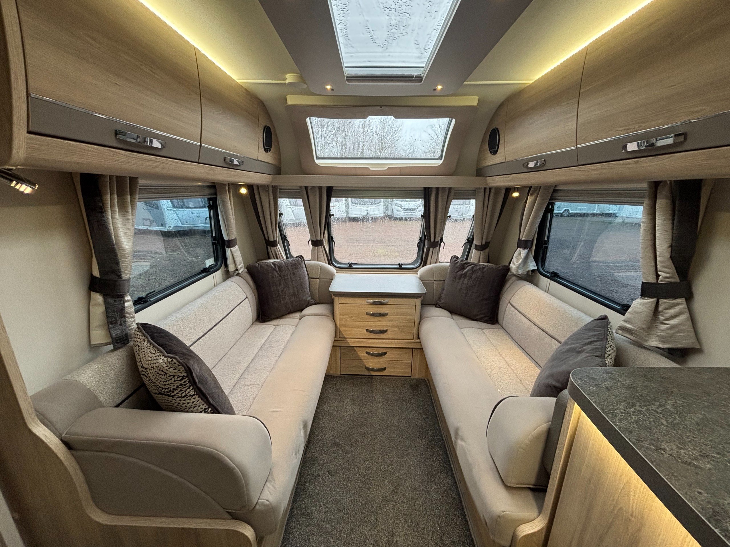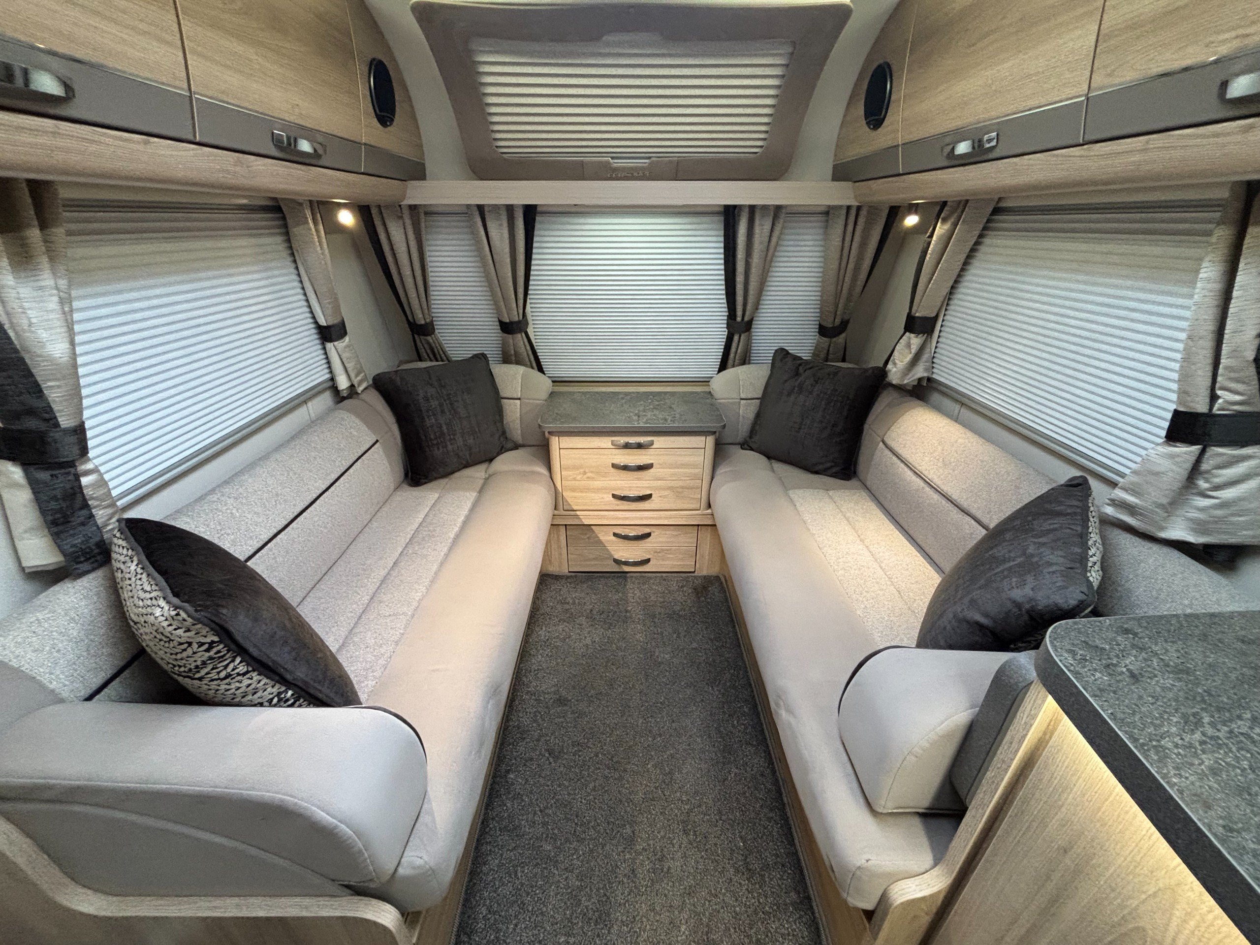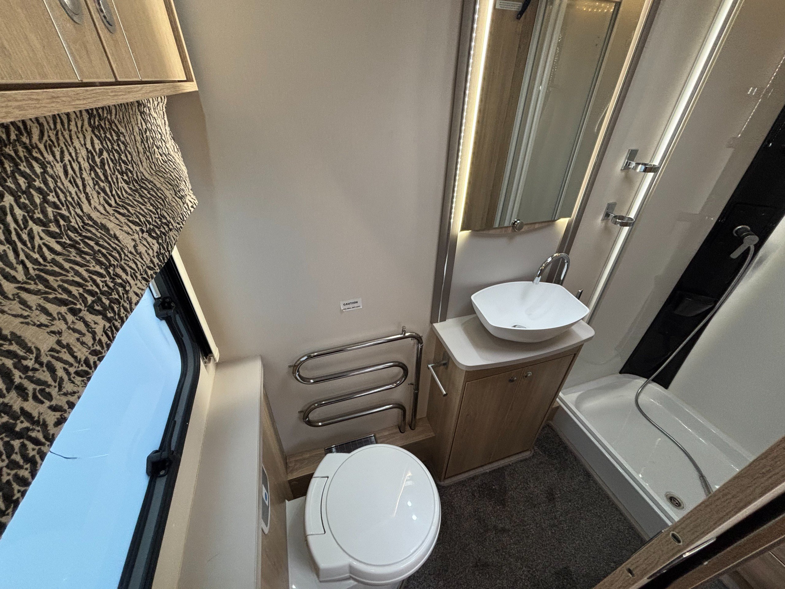 A high specification twin axle with a transverse island bed, end washroom and fitted motor mover.