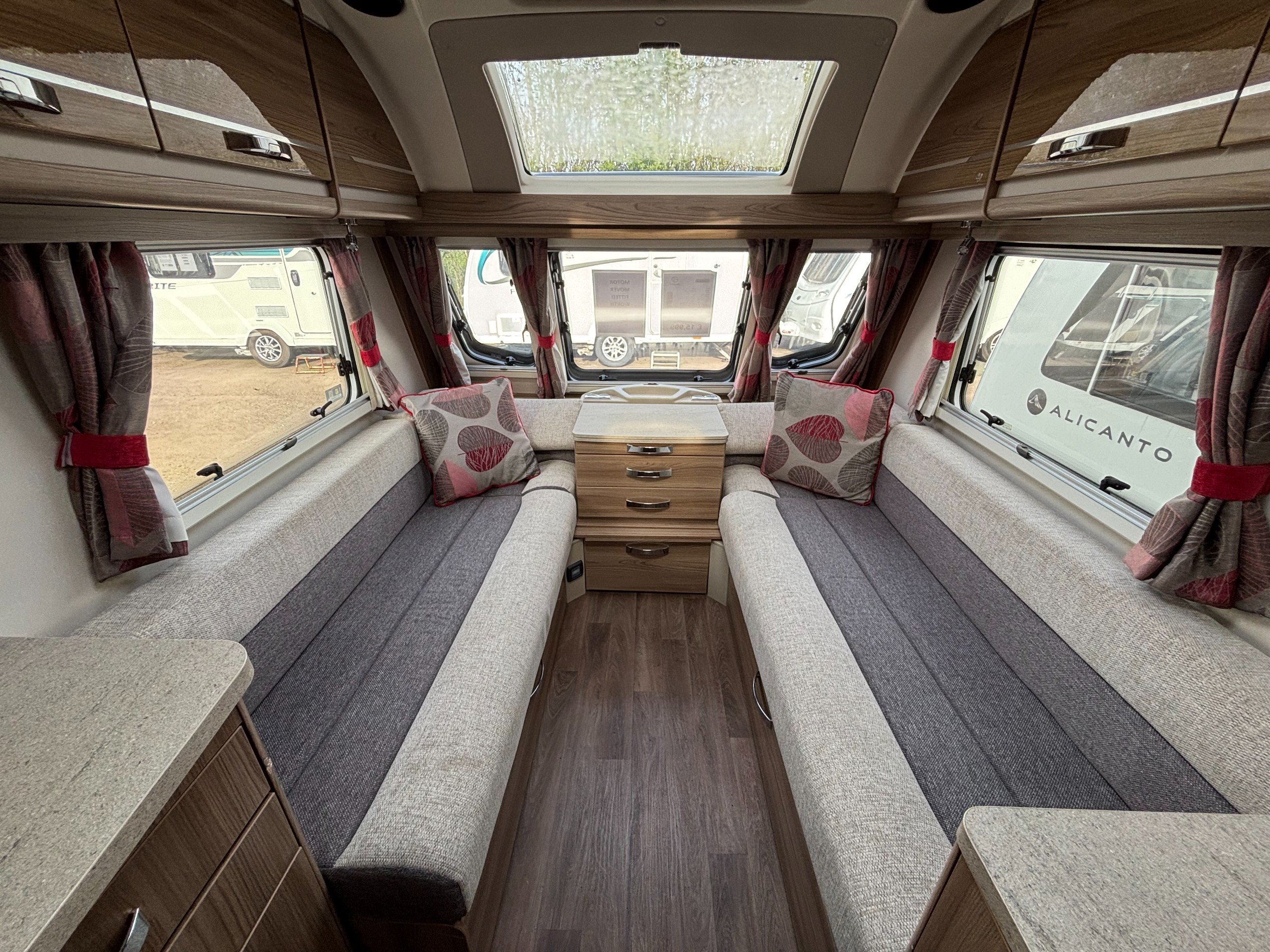 Side dinette, end washroom model with fitted motor mover, Alde heating and rear bike carrier