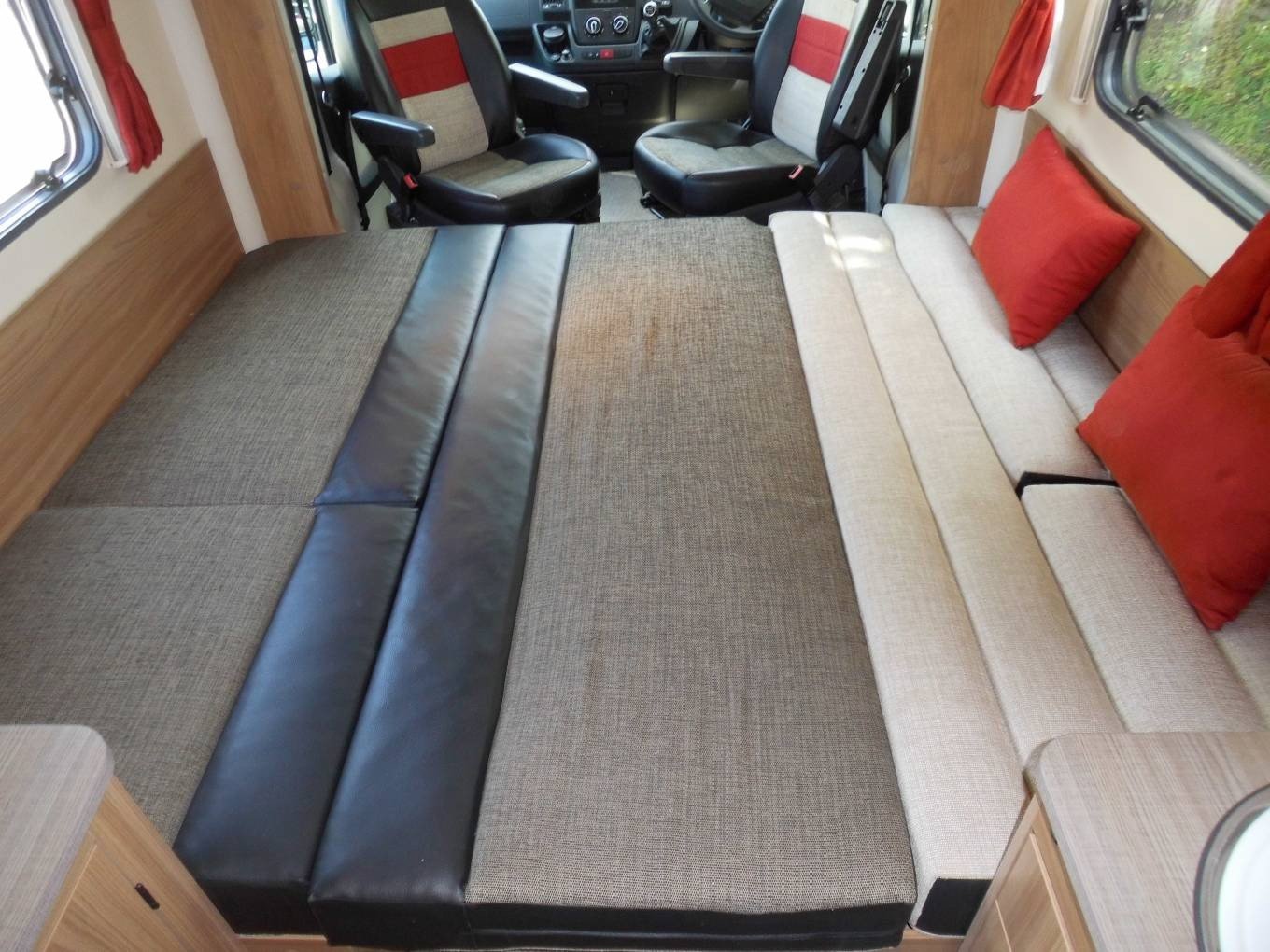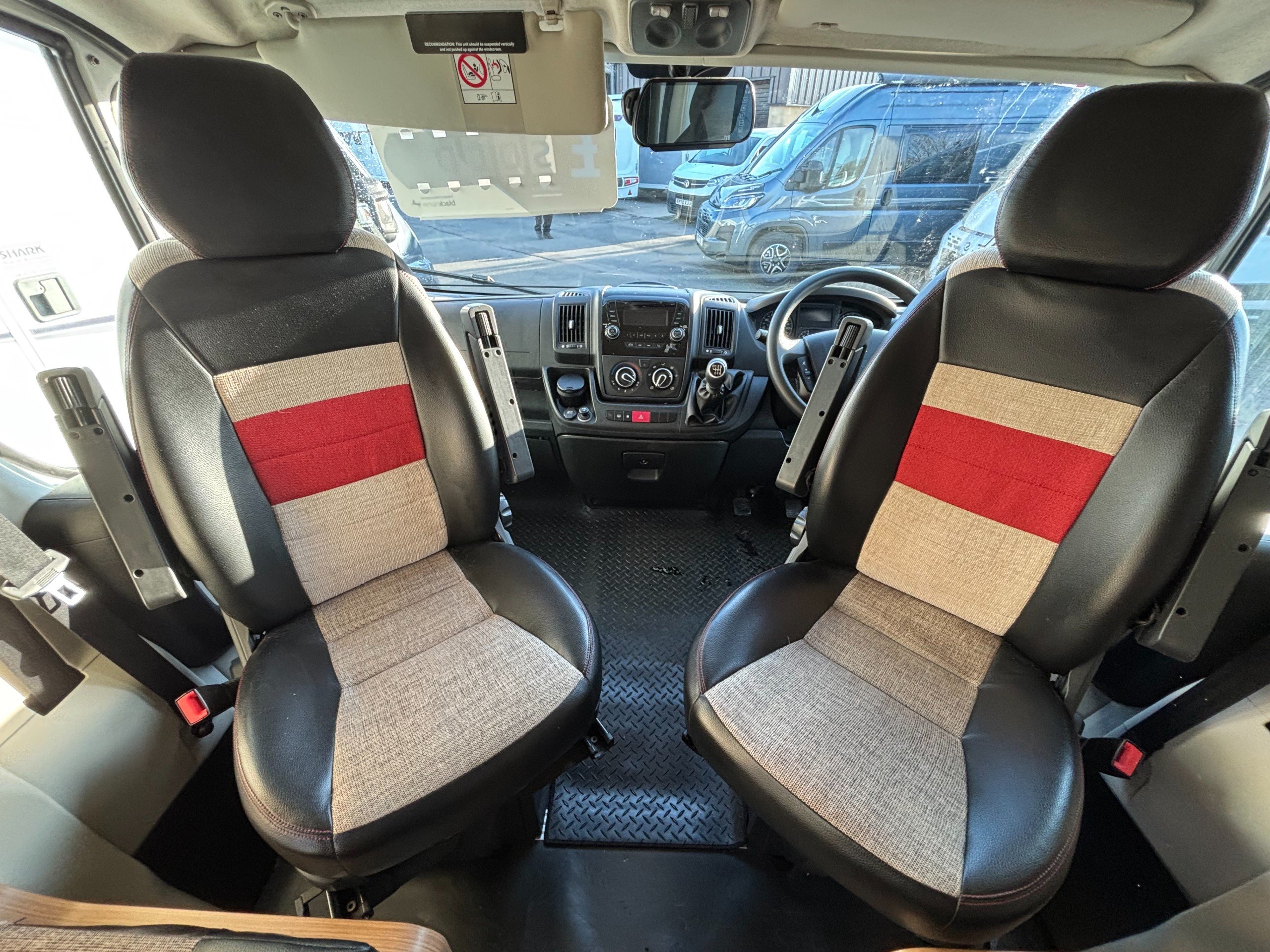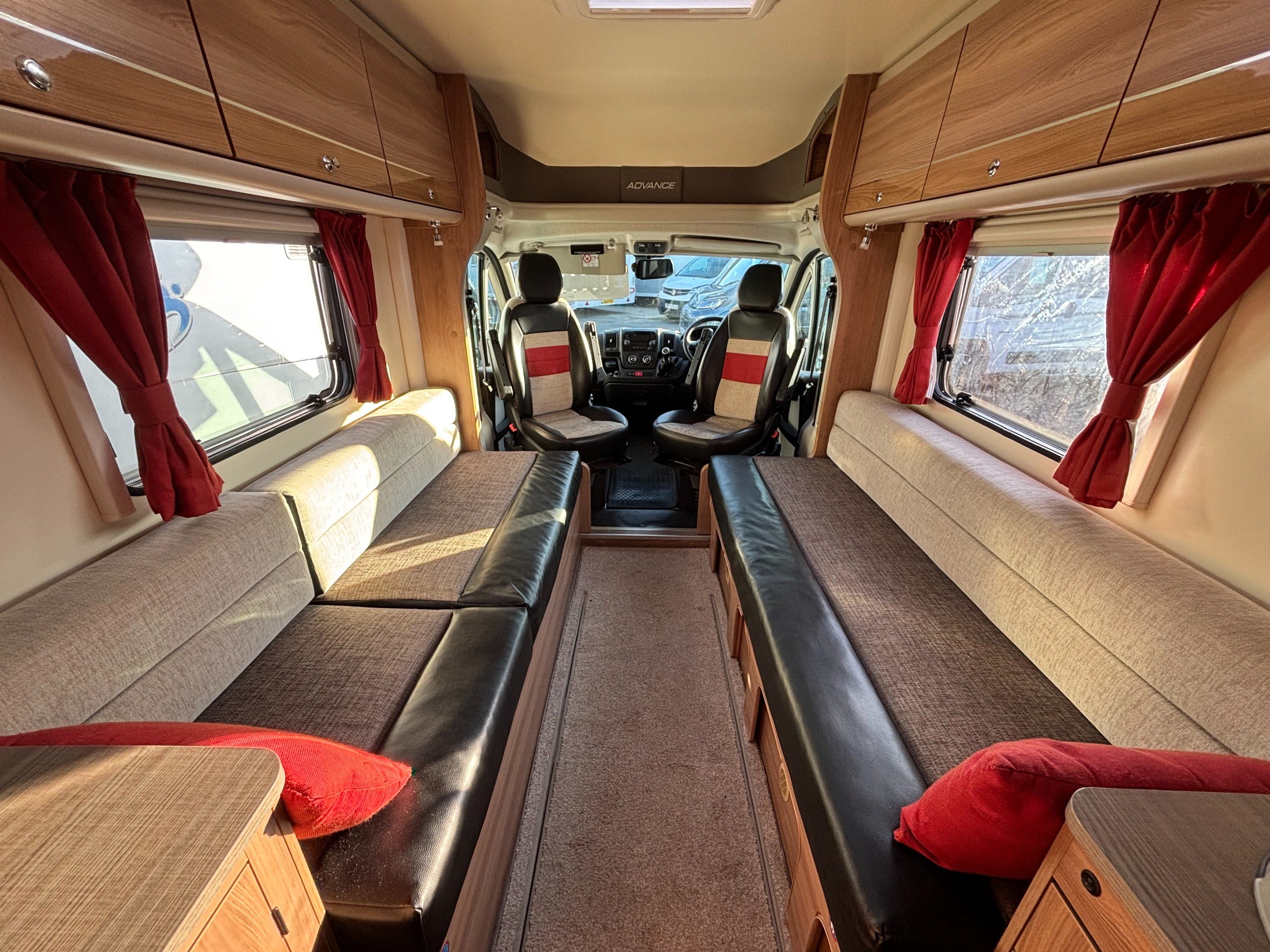 Based on the Peugeot Boxer this motorhome comprises a low profile cab with two long bench seats that convert to a double or can be uses as two singles and a large end washroom with separate shower.