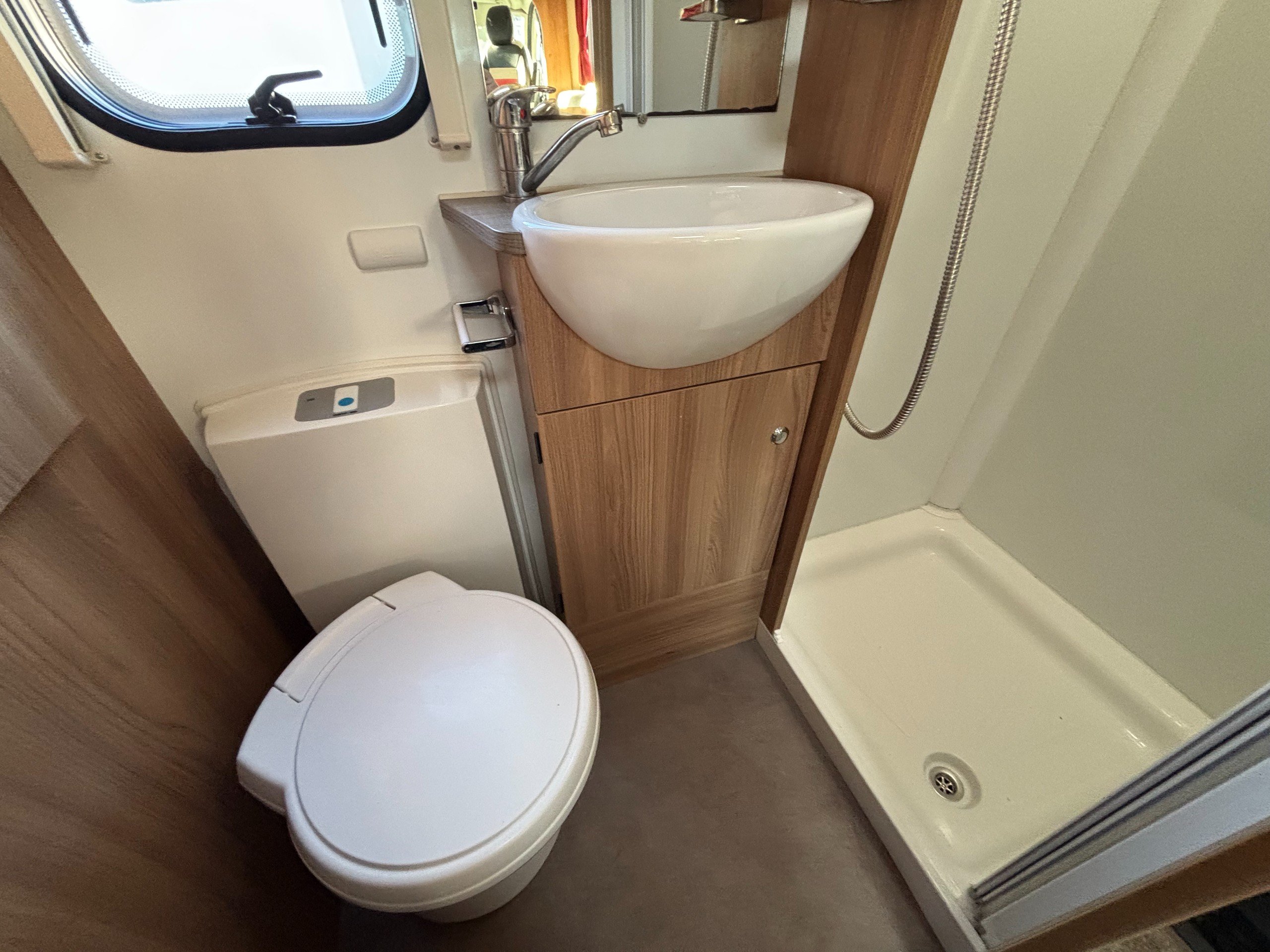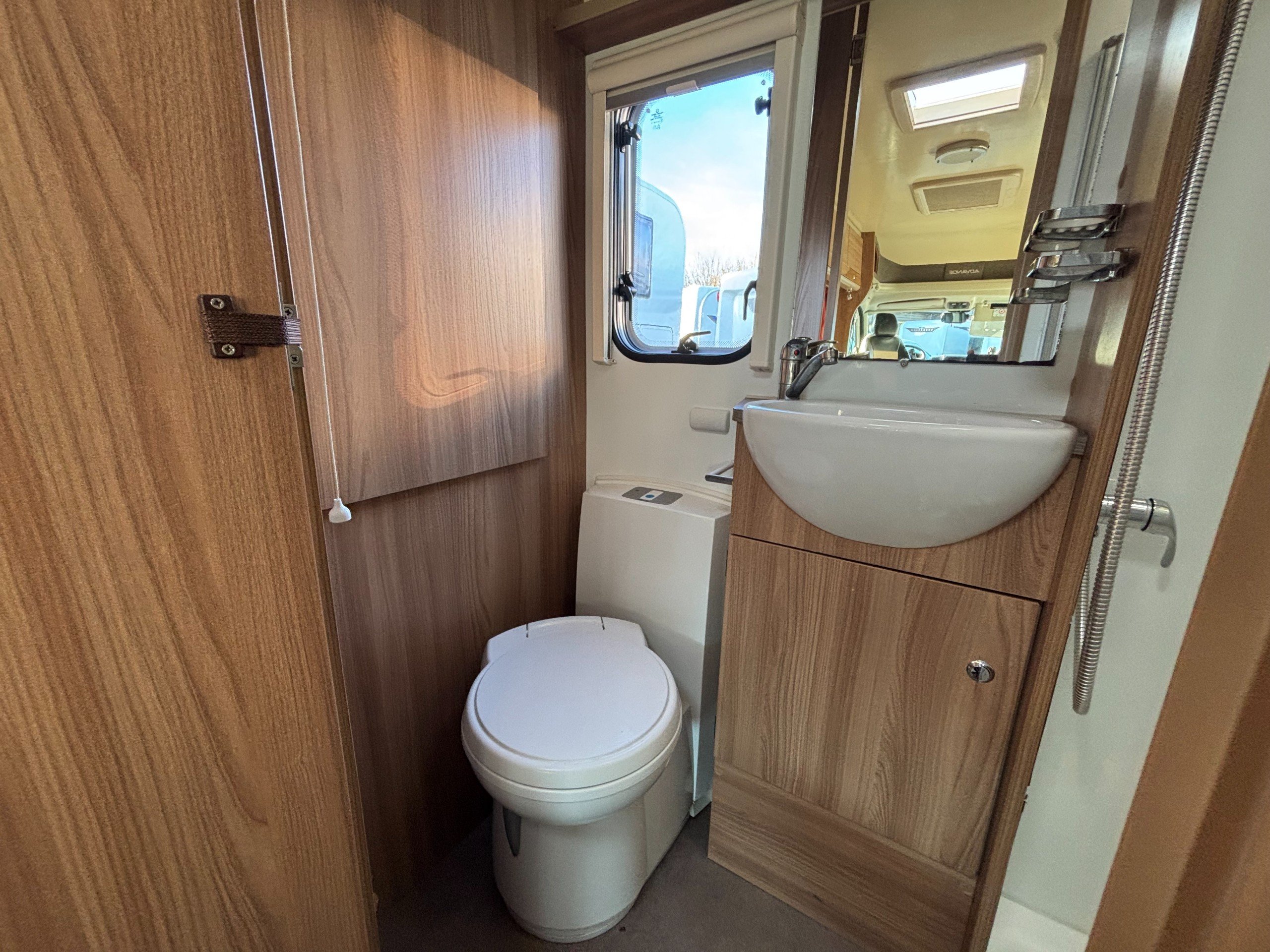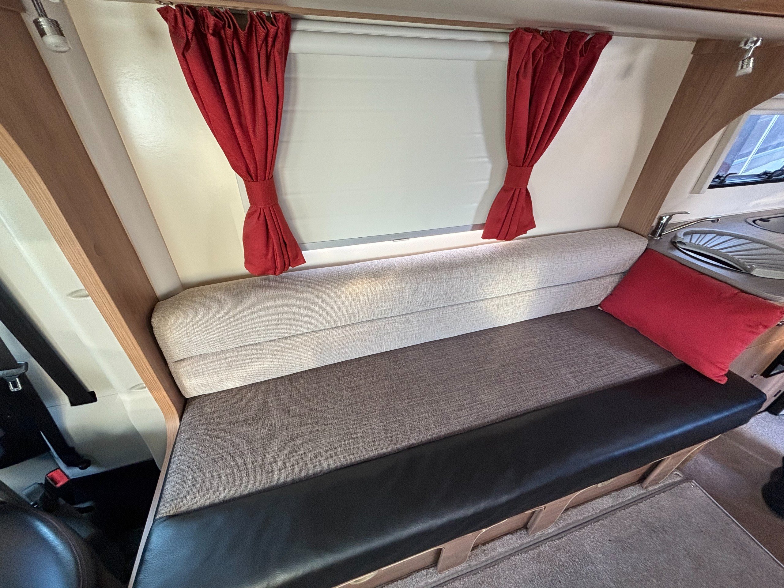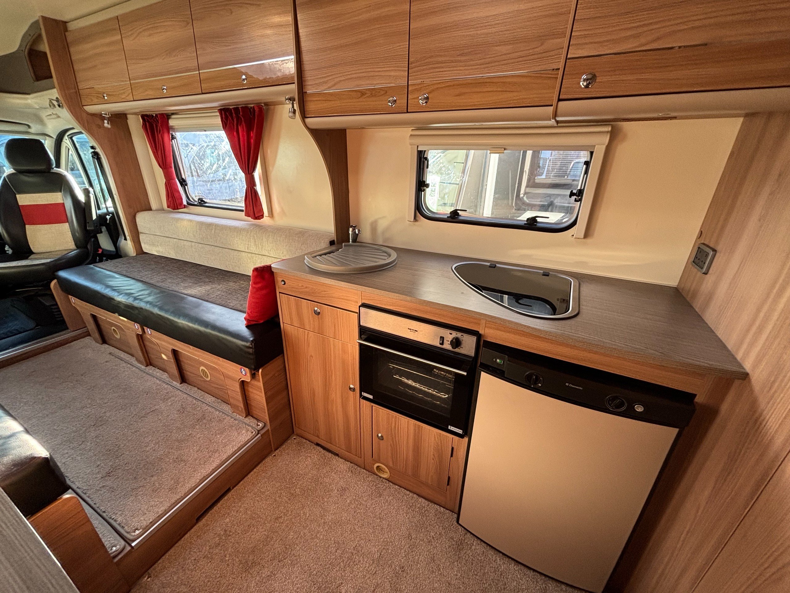 Based on the Peugeot Boxer this motorhome comprises a low profile cab with two long bench seats that convert to a double or can be uses as two singles and a large end washroom with separate shower.