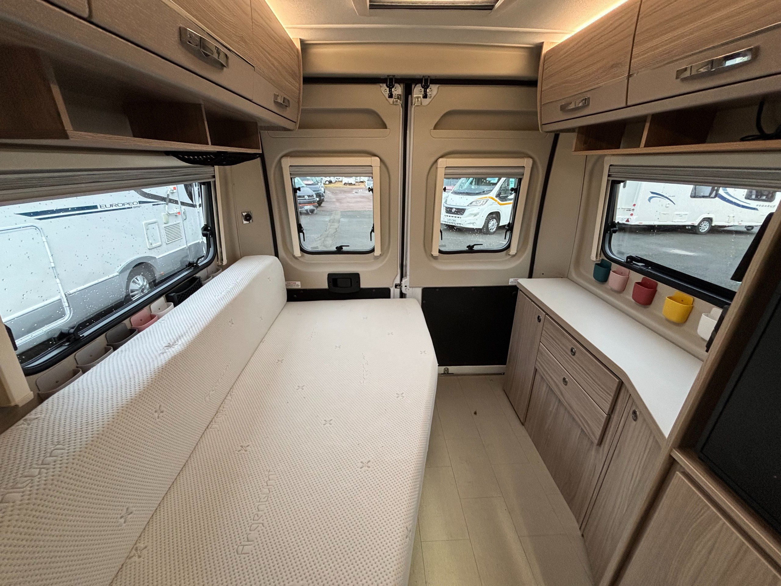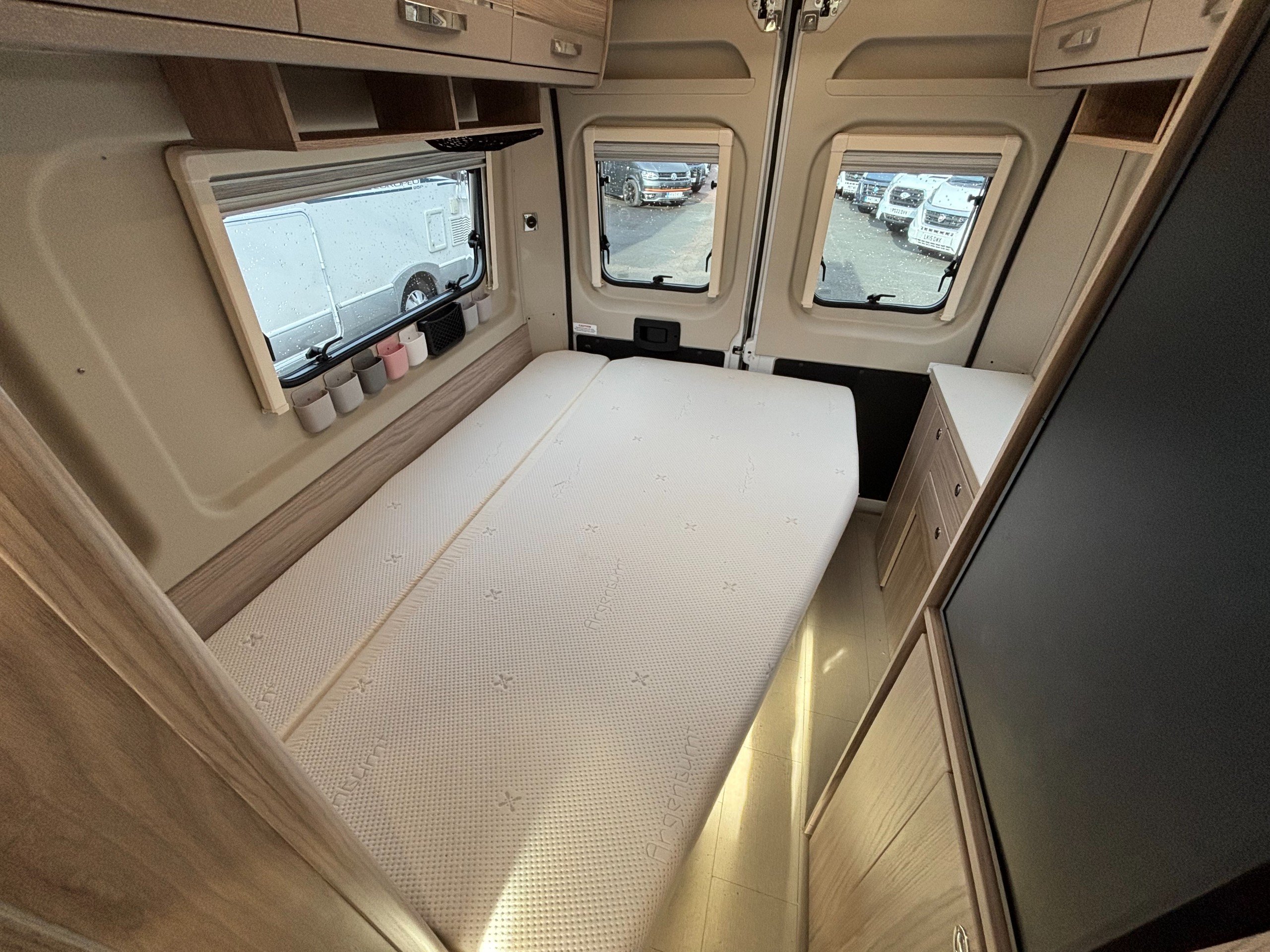An immaculate van conversion with fixed pull out bed and on board shower.