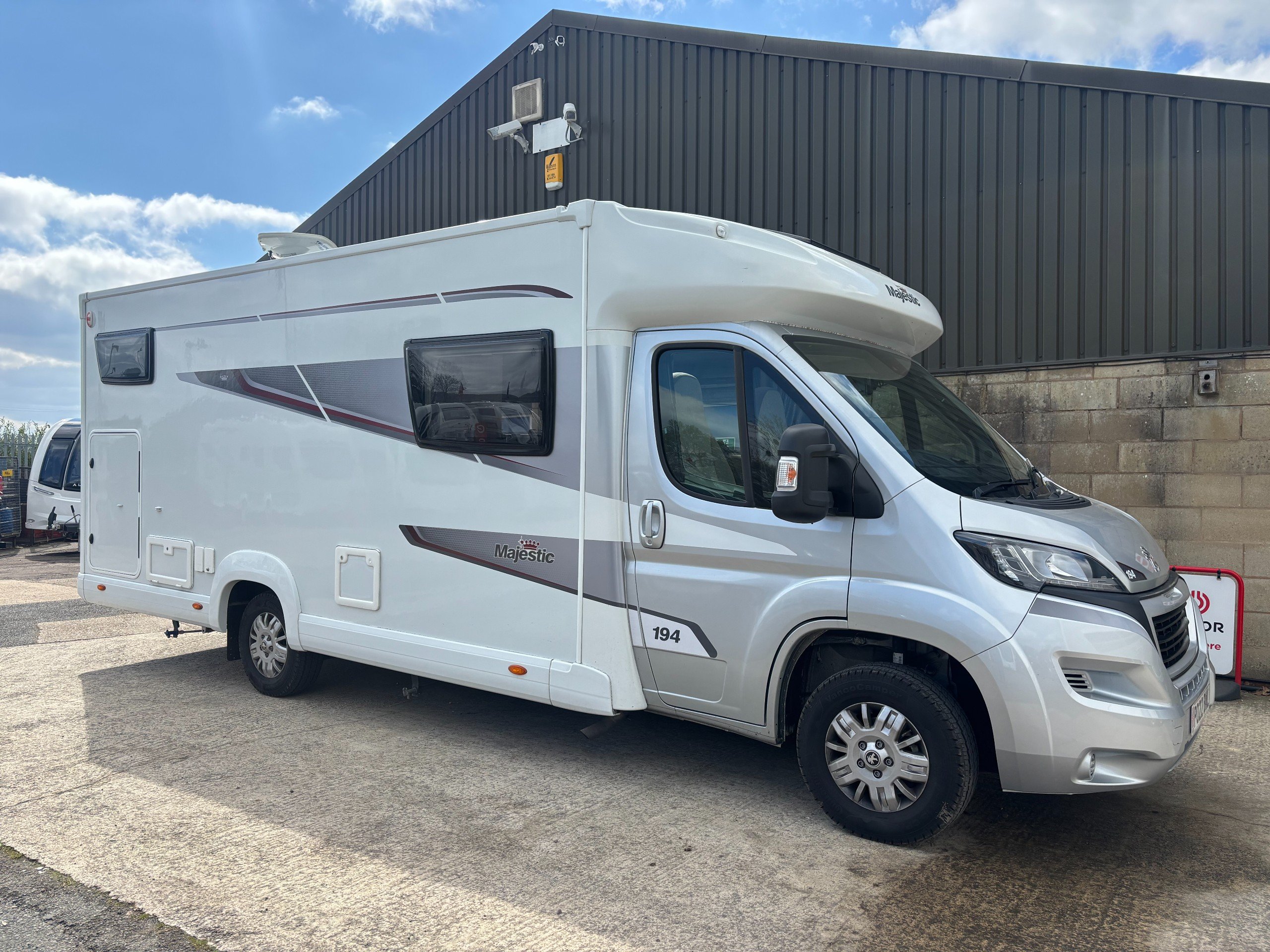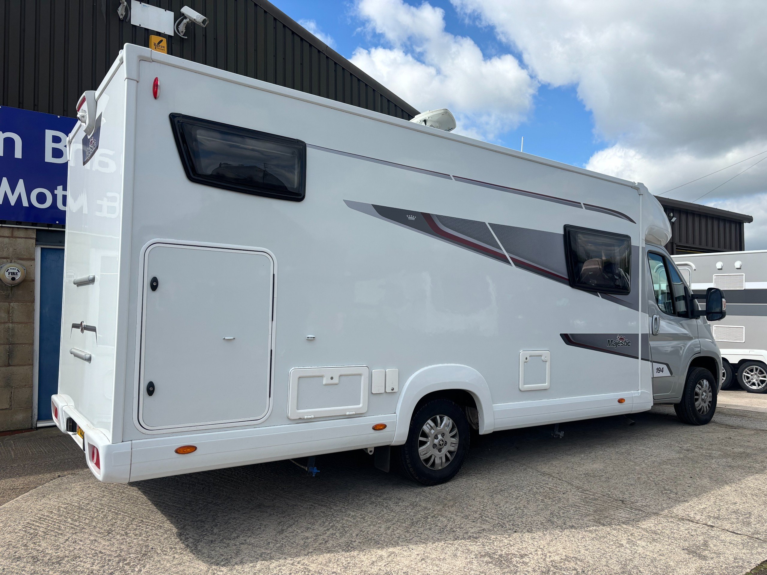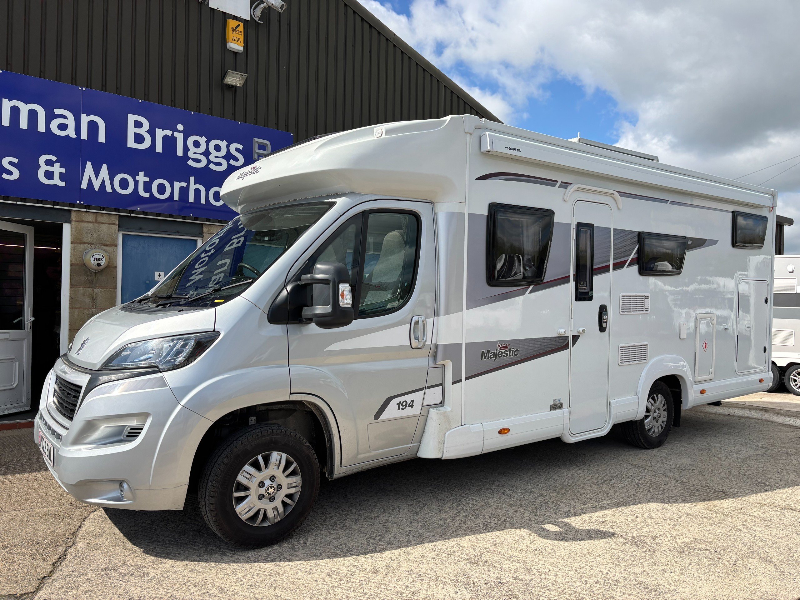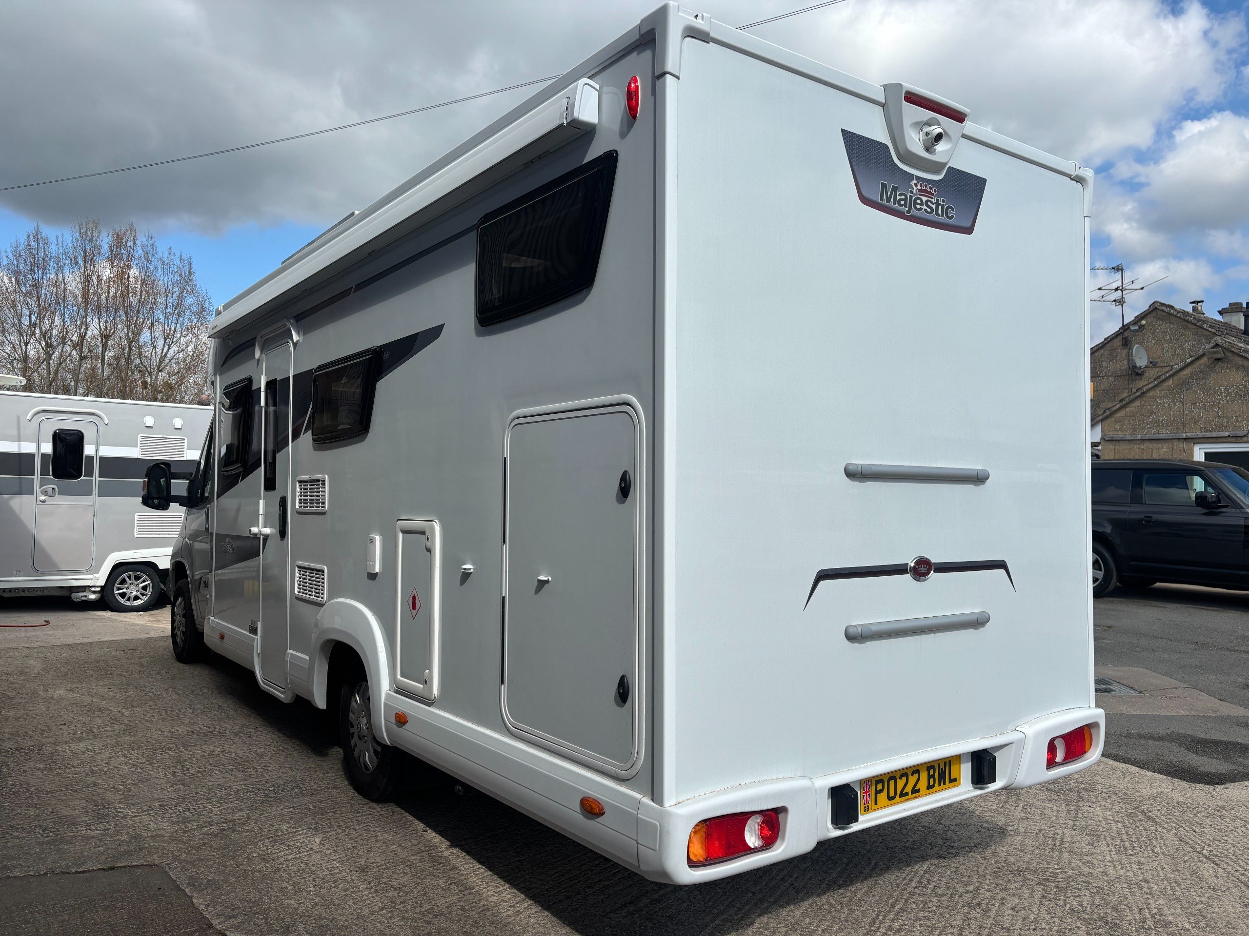 The rear of the Majestic 194 has a raised sleeping area with two single beds above a large garage. At the front, the parallel lounge seats four (with foldaway travel seats) and converts to a further double bed. A great alternative for two or four travellers.