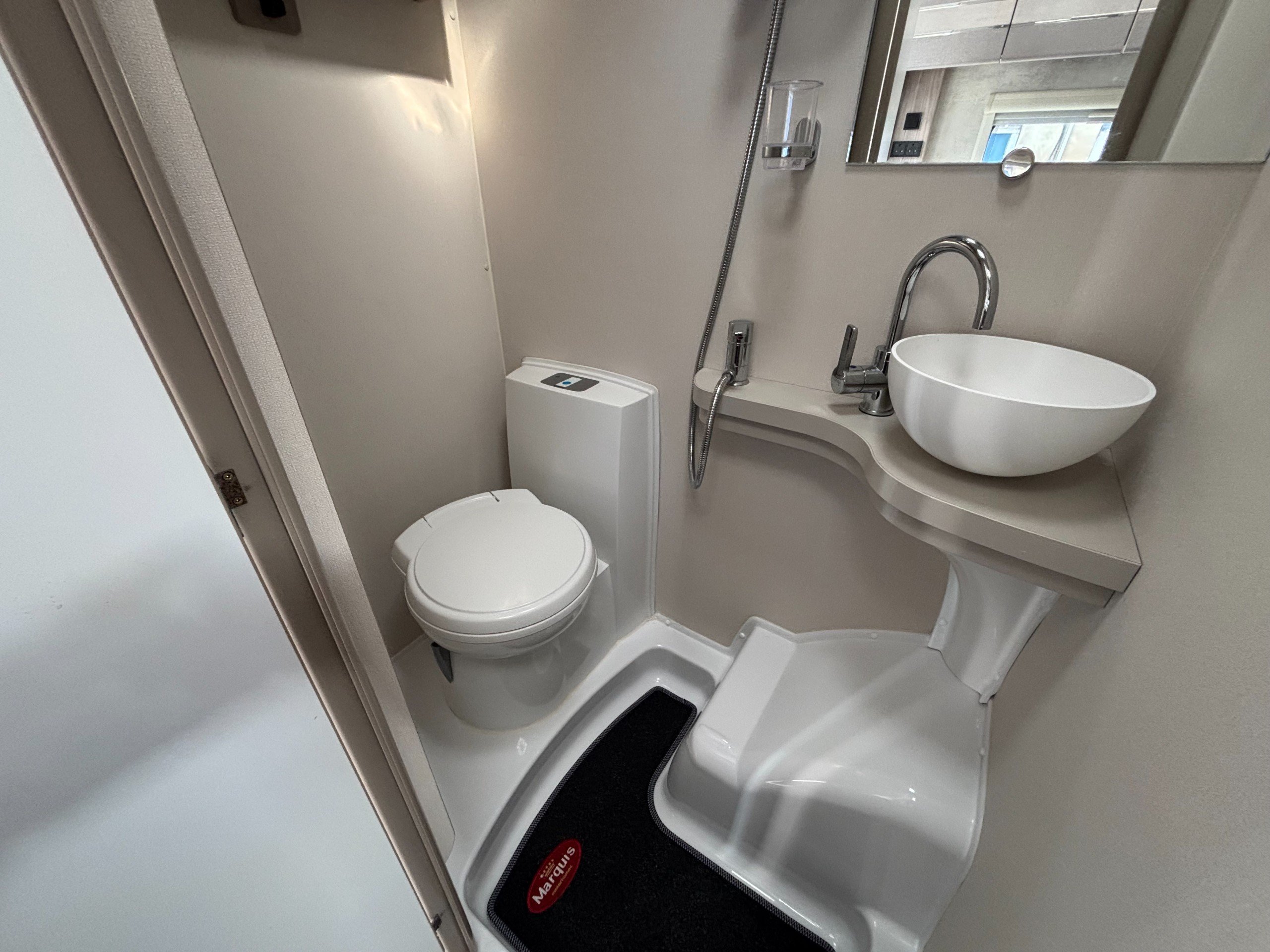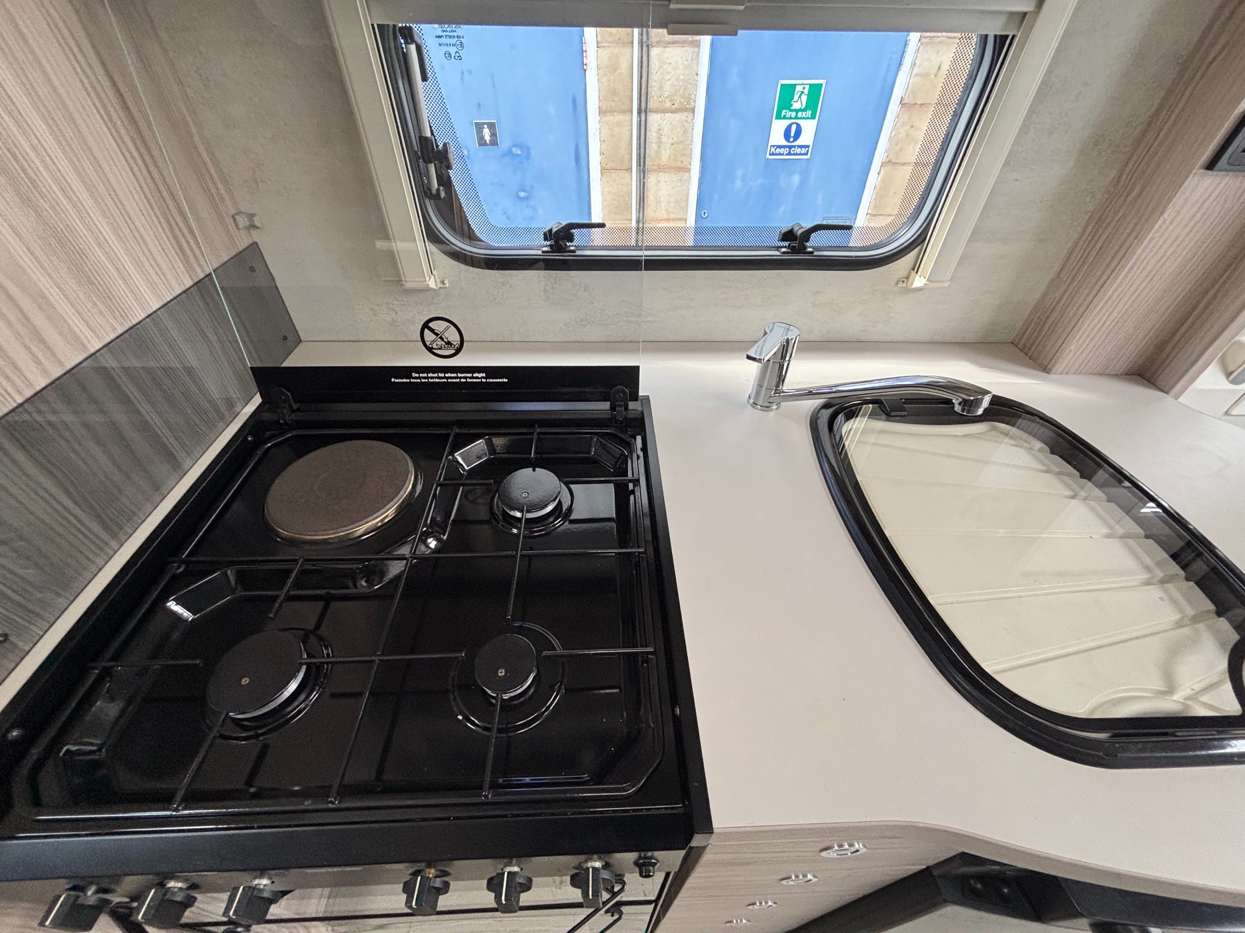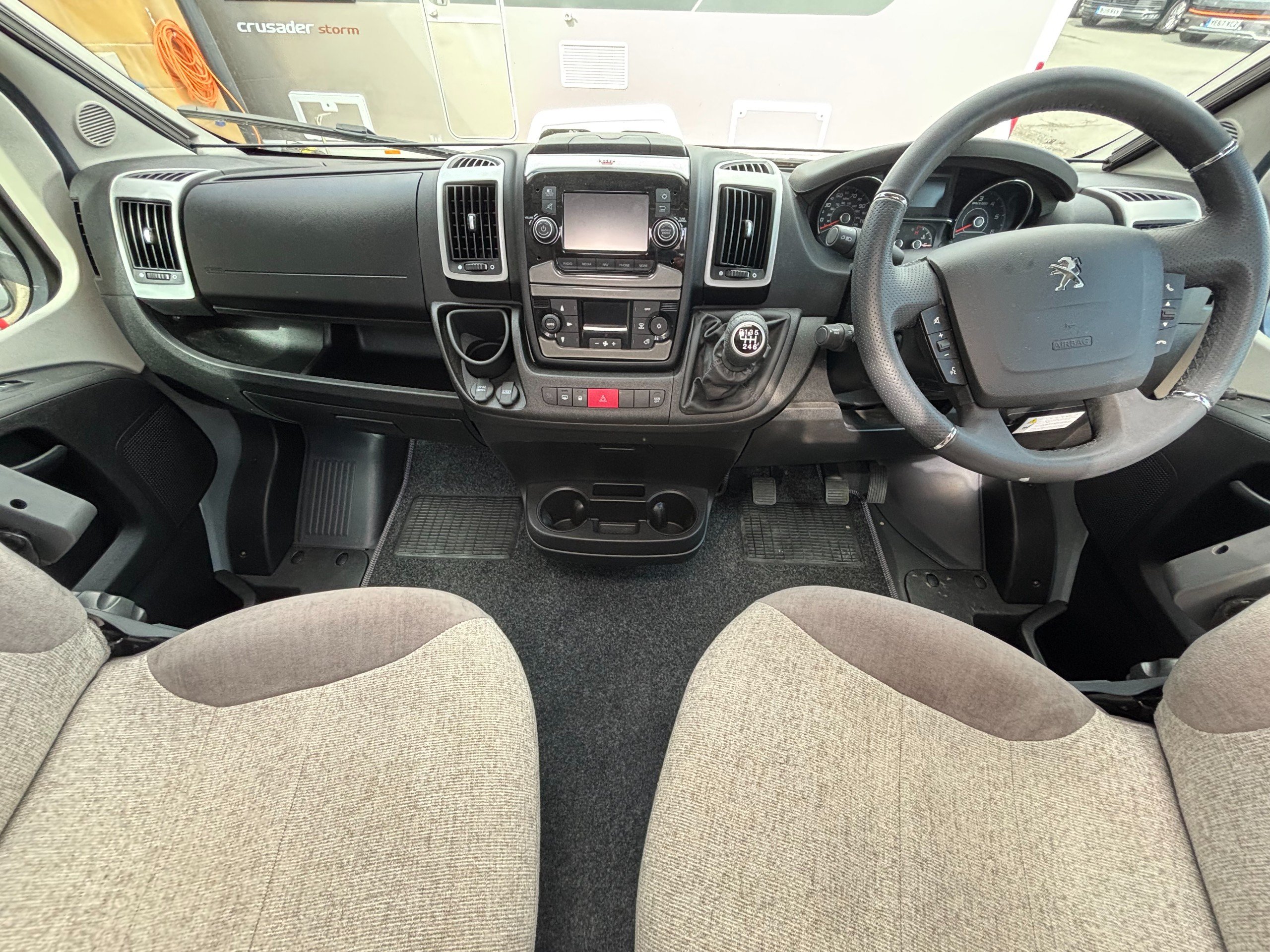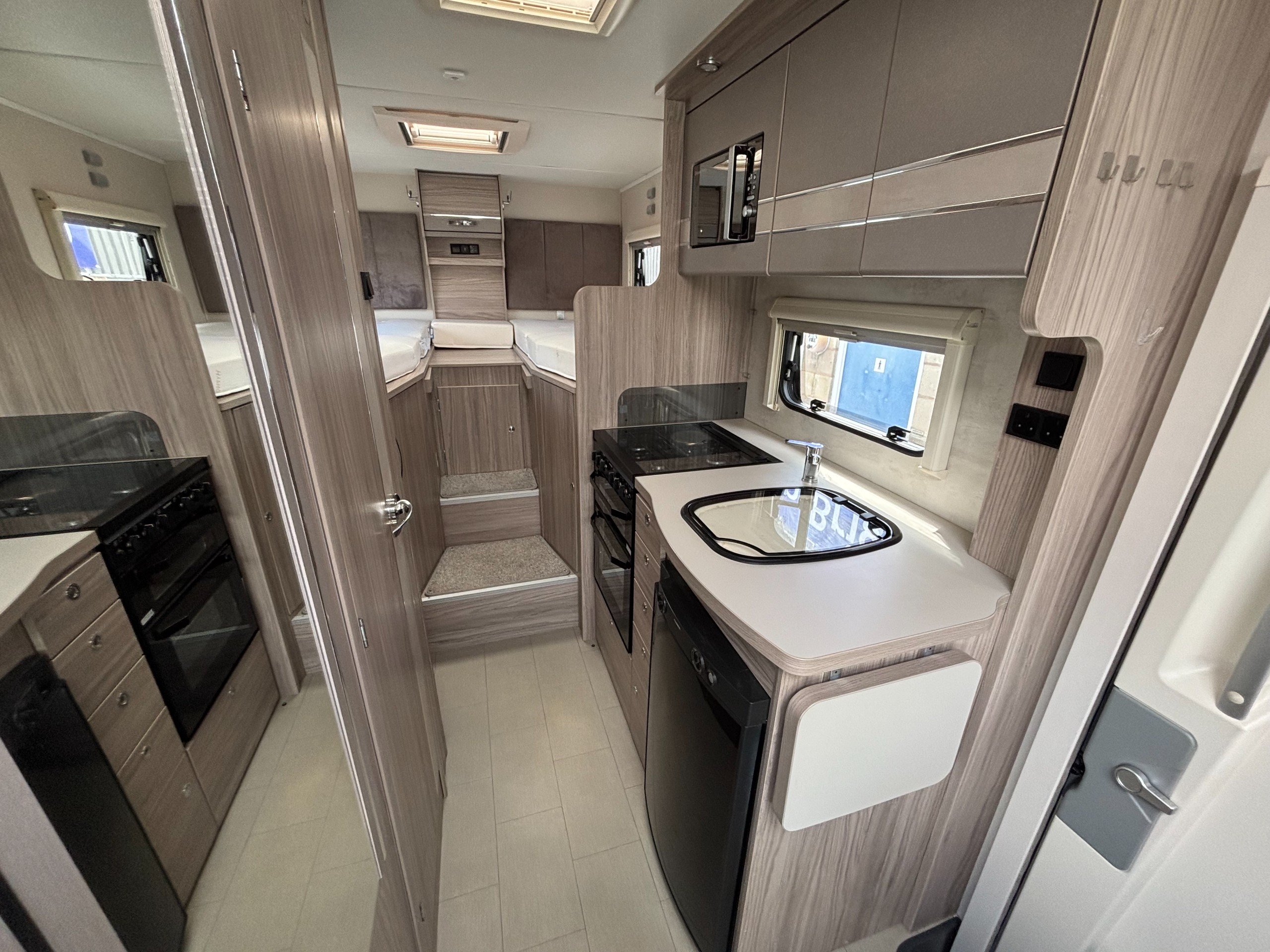 The rear of the Majestic 194 has a raised sleeping area with two single beds above a large garage. At the front, the parallel lounge seats four (with foldaway travel seats) and converts to a further double bed. A great alternative for two or four travellers.